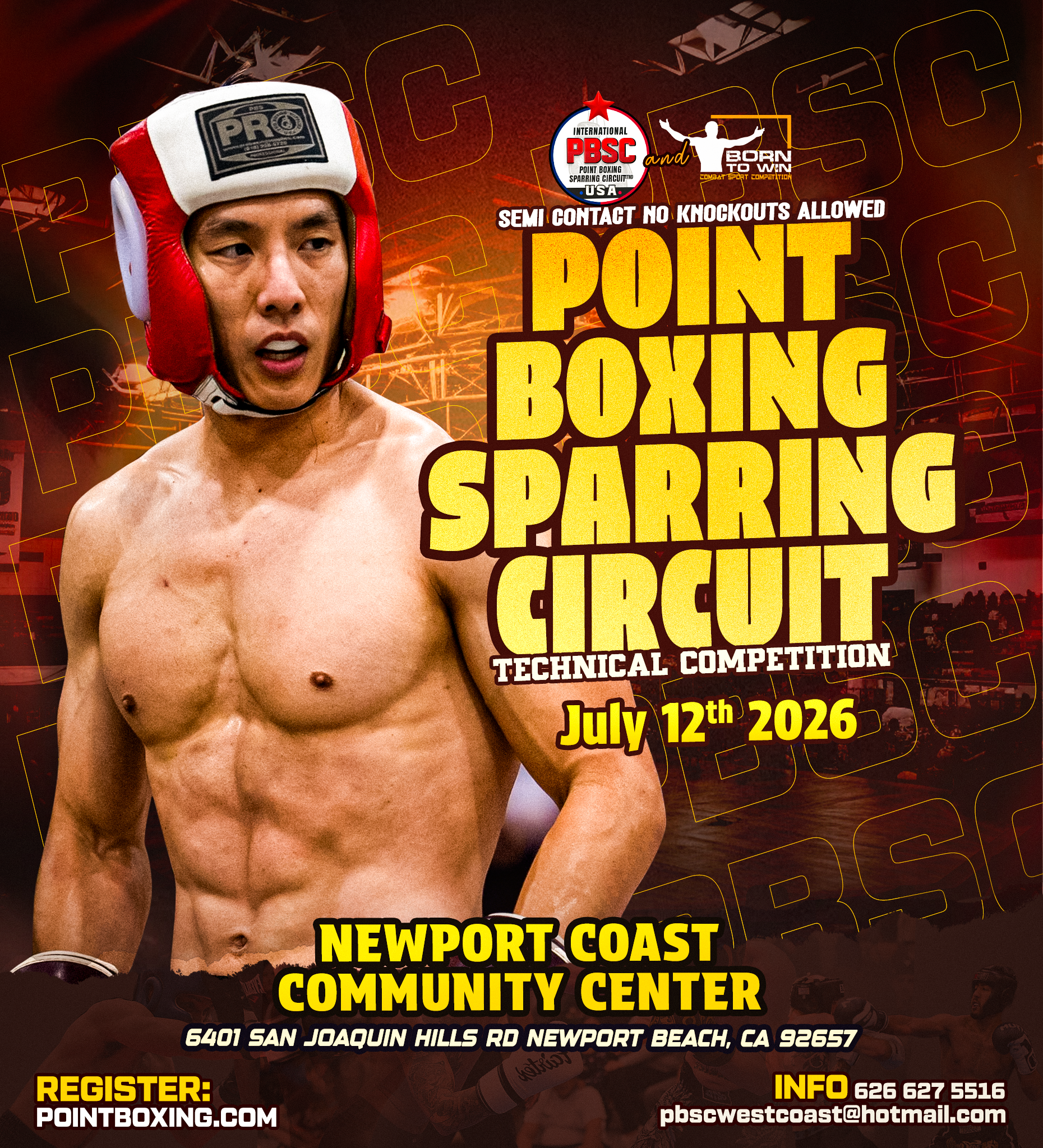 Newport Beach hosts an official PBSC sparring event, bringing together athletes from across the region for a day of competitive point boxing. Held at the Newport Coast Community Center, the event emphasizes controlled-contact action, technical scoring, and disciplined matchups.